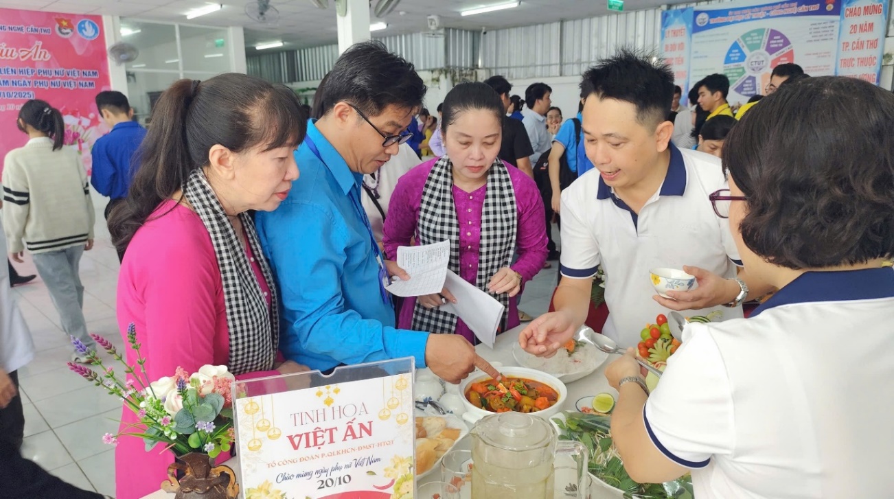 Sáng ngày 19/10/2025, Hội thi nấu ăn nhân kỷ niệm 95 năm Ngày thành lập Hội Liên hiệp Phụ nữ Việt Nam (20/10/1930-20/10/2025) và 15 năm Ngày Phụ nữ Việt Nam (20/10/2010-20/10/2025) đã diễn ra với sự tham gia của 17 Tổ Công đoàn trực thuộc Công đoàn cơ sở Trường Đại học Kỹ thuật - Công nghệ Cần Thơ. Các đơn vị đã mang đến Hội thi những món cà ri như: Cà ri lươn, Cà ri vịt, Cà ri gà, Cà ri Việt Ấn… với hương vị đặc sắc và nhiều cách trưng bày đẹp mắt, độc đáo.