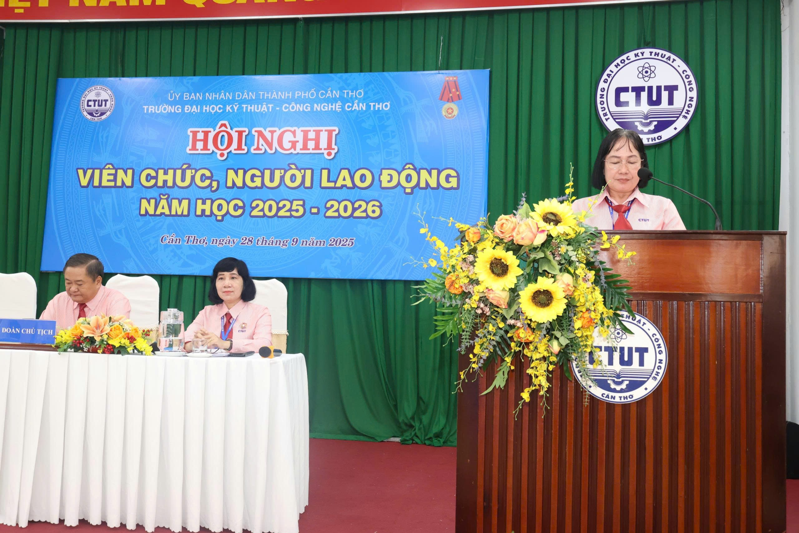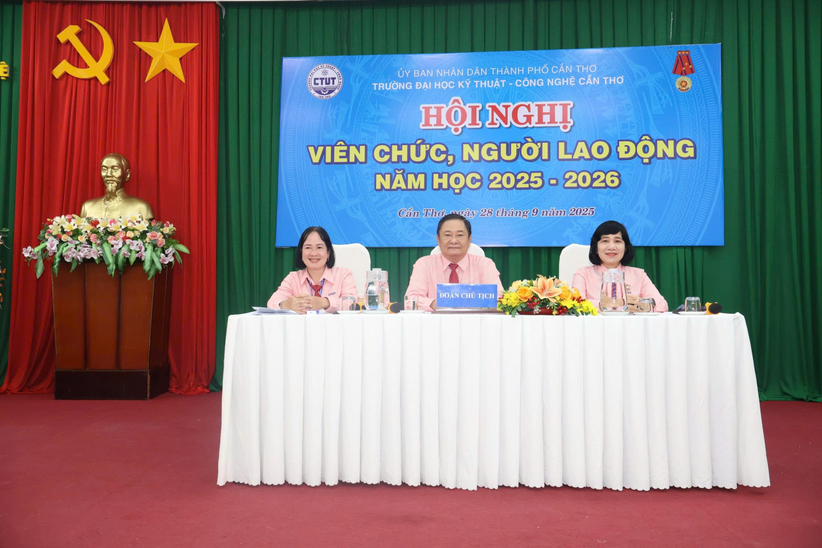 Tham dự Hội nghị có NGND. PGS. TS Huỳnh Thanh Nhã, Hiệu trưởng Nhà trường; NGƯT.TS. Đỗ Thị Tuyết Nhung, Bí thư Đảng ủy, Chủ tịch Hội đồng trường, thầy cô trong Ban Giám hiệu, Ban Chấp hành Công đoàn, cùng lãnh đạo, viên chức, người lao động các phòng, khoa, trung tâm của Trường Đại học Kỹ thuật - Công nghệ Cần Thơ.