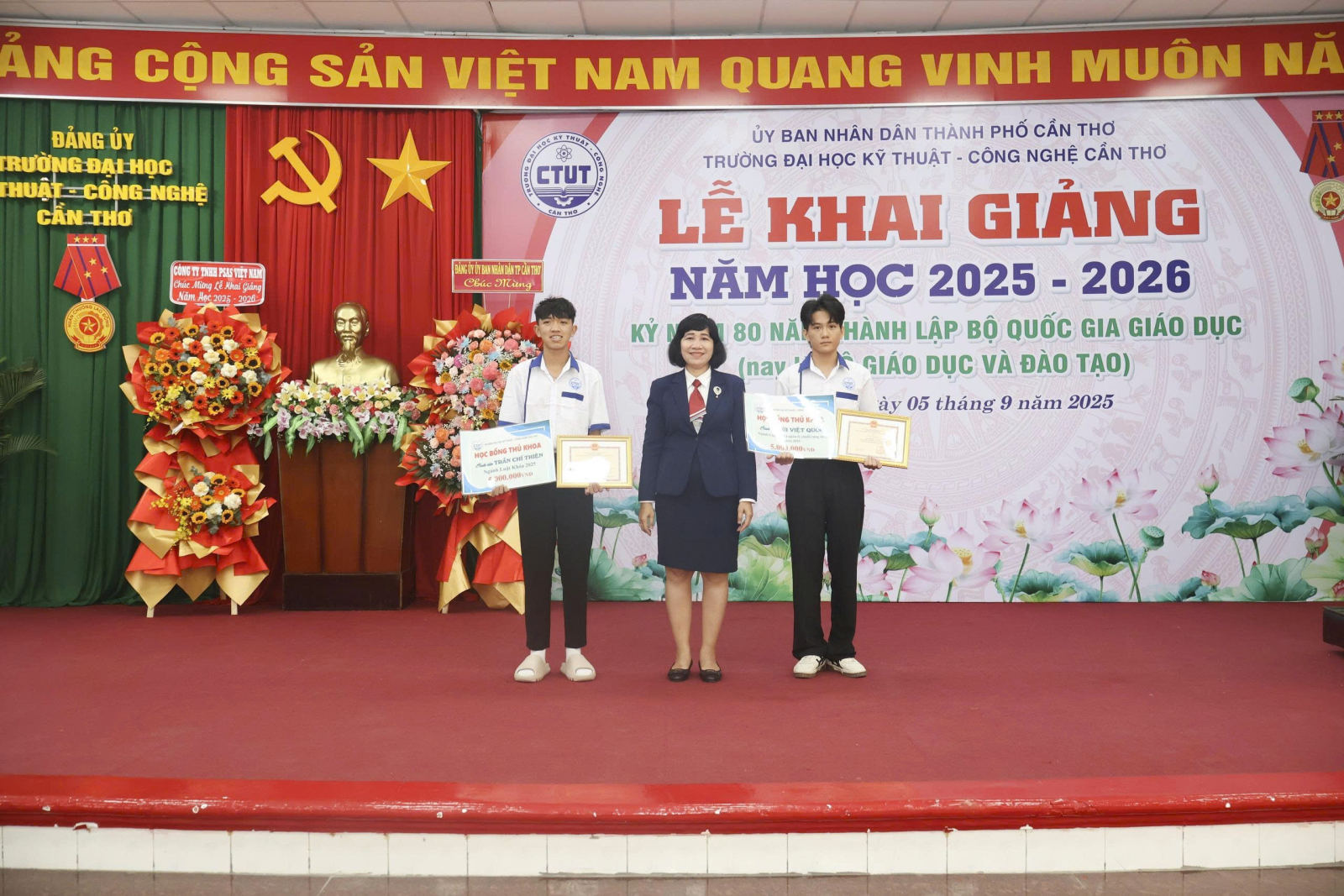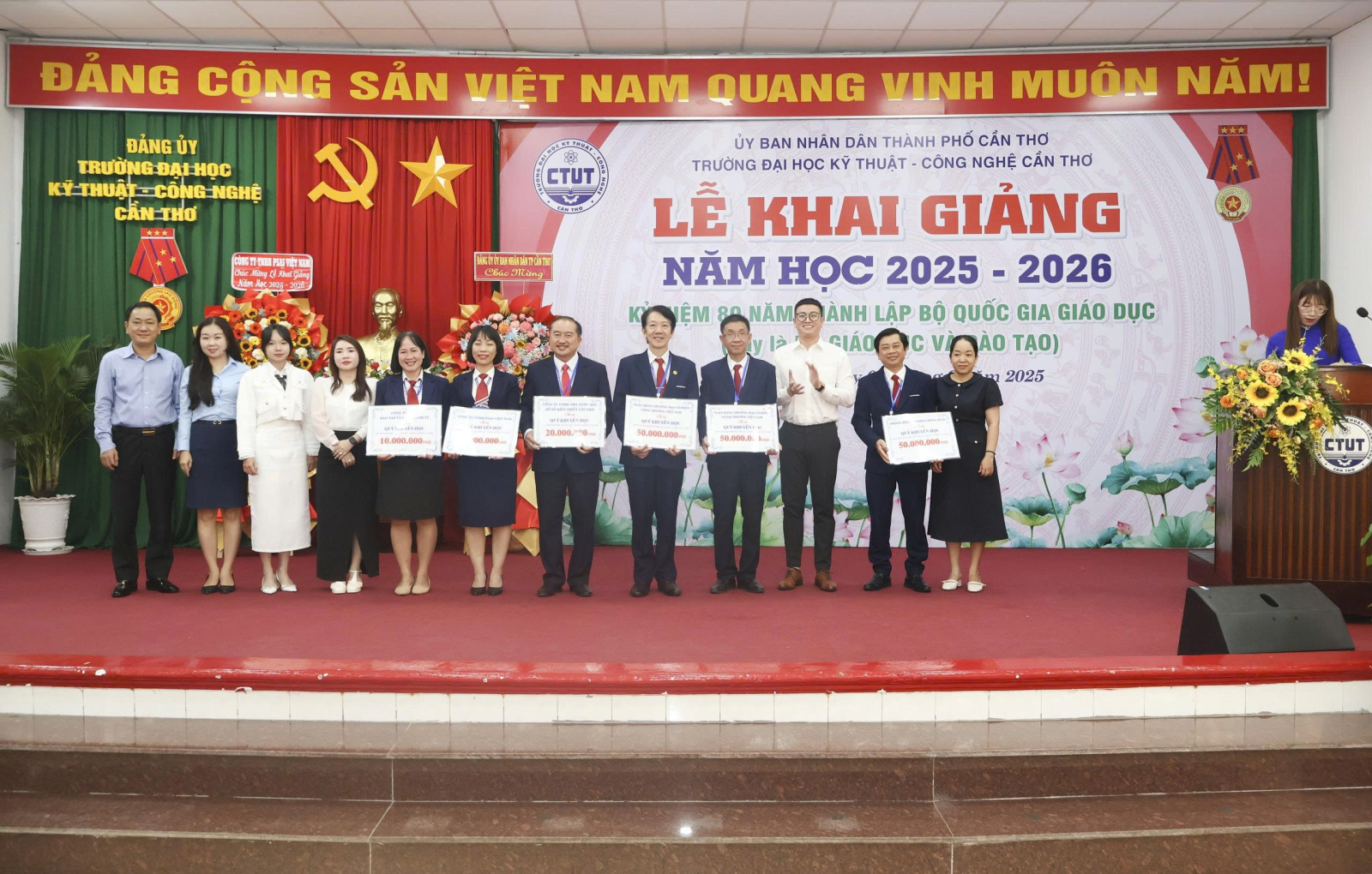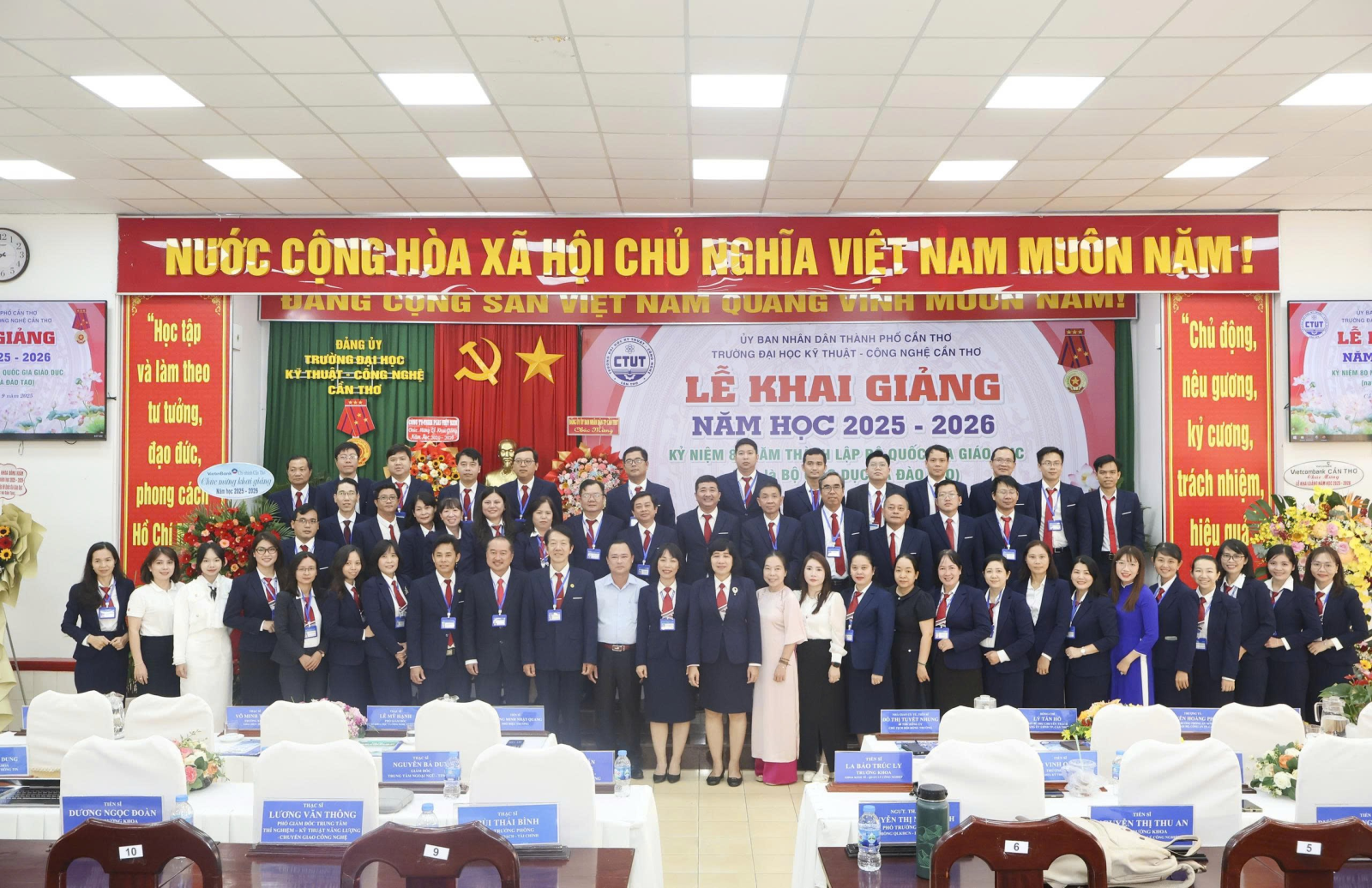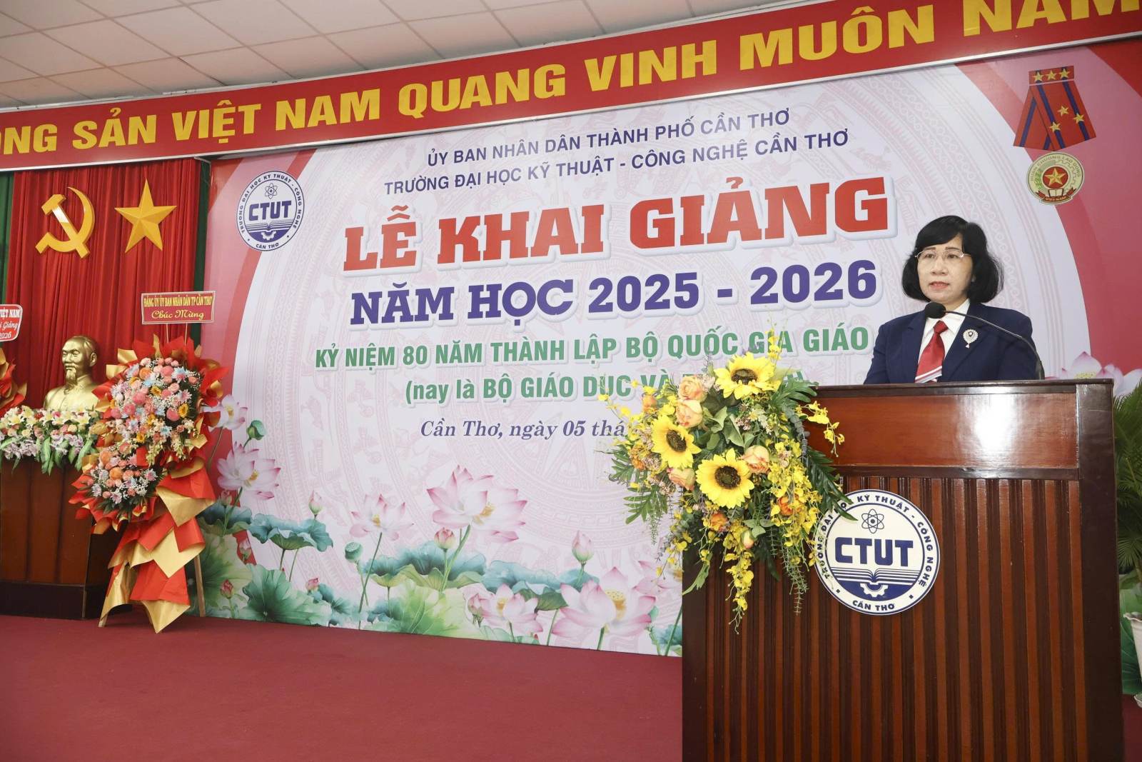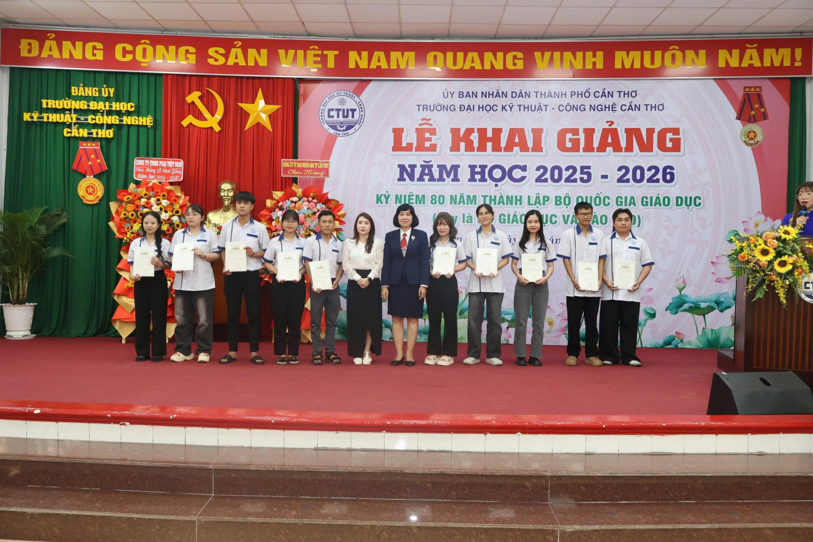 Ngày 05/9/2025, Trường Đại học Kỹ thuật - Công nghệ Cần Thơ (CTUT) long trọng tổ chức Lễ Khai giảng năm học 2025 -2026. Đây không chỉ là ngày hội truyền thống của thầy và trò, mà còn là một sự kiện có ý nghĩa đặc biệt, diễn ra đúng dịp cả nước kỷ niệm 80 năm Cách mạng Tháng Tám thành công và Quốc khánh 2/9, đồng thời kỷ niệm 80 năm thành lập Bộ Quốc gia giáo dục - nay là Bộ Giáo dục và Đào tạo.